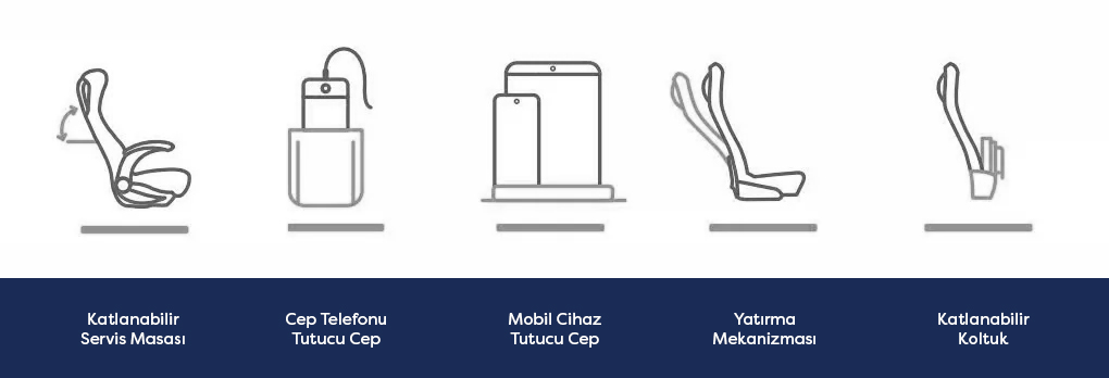 • Donanım Özellikleri: Koltuk arkası file, yemek sehpası, elcek tutamak gibi ek özellikler sunar.